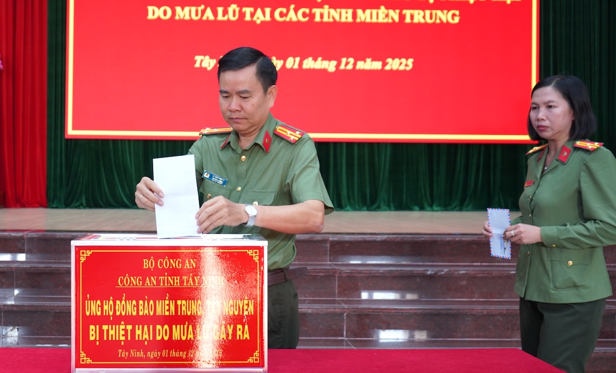 Thời gian qua, mưa bão, lũ quét gây ảnh hưởng nghiêm trọng đến tính mạng, tài sản của Nhân dân tại các tỉnh miền Trung và Tây Nguyên. Phát huy truyền thống đoàn kết, tinh thần “tương thân, tương ái” của lực lượng Công an nhân dân, Công an tỉnh Tây Ninh phát động cán bộ, chiến sĩ toàn lực lượng đóng góp ủng hộ, góp phần chia sẻ khó khăn với đồng bào vùng lũ. Toàn bộ số tiền quyên góp sẽ được chuyển đến các đơn vị chức năng để kịp thời hỗ trợ Nhân dân, bảo đảm đúng mục đích, công khai và minh bạch.
