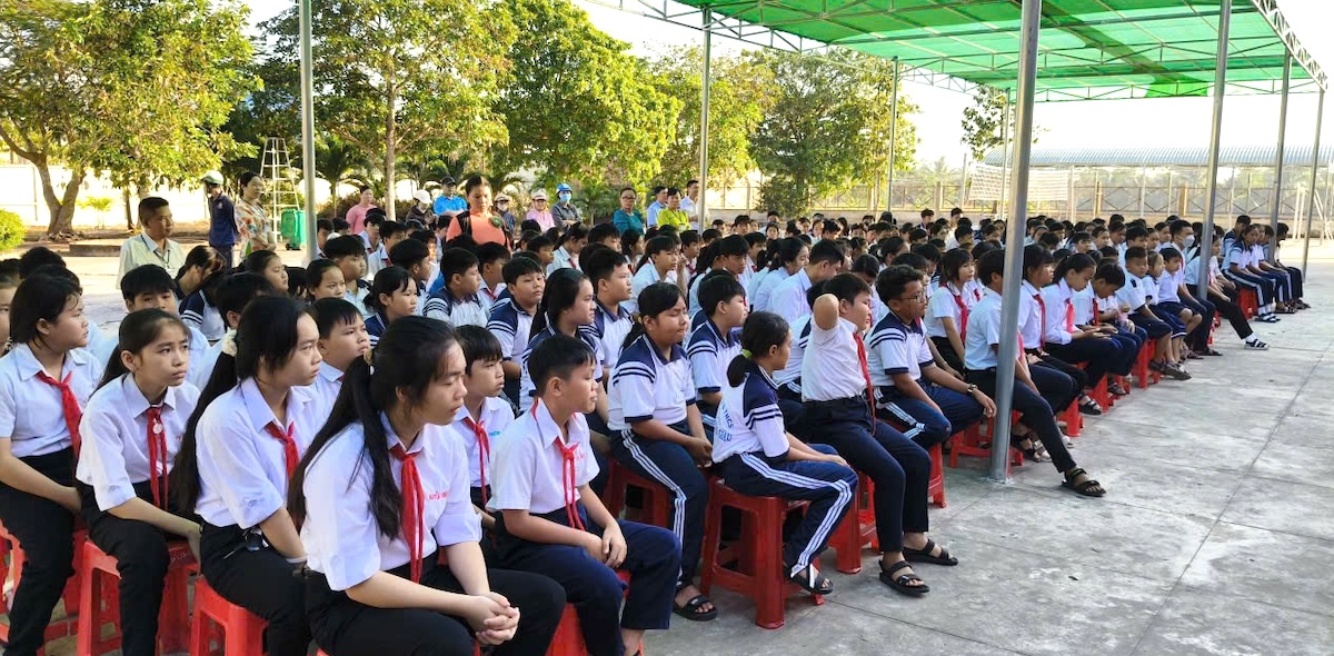Công an xã Bình Hiệp tuyên truyền an toàn giao thông, phòng chống ma túy cho học sinh Trường Tiểu học – THCS Trần Văn Giàu