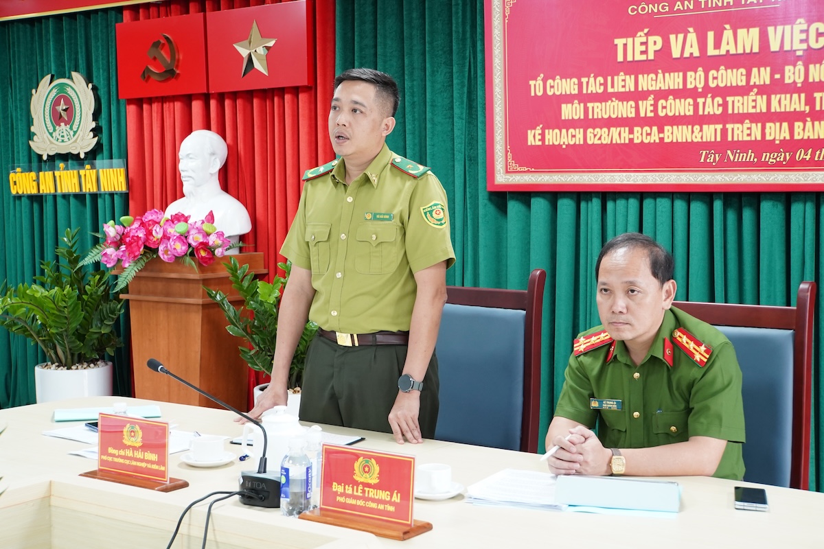 Ngày 04/12/2025, Tổ công tác liên ngành Bộ Công an - Bộ Nông nghiệp và Môi trường do đồng chí Hà Hải Bình - Phó Cục trưởng Cục Lâm nghiệp và Kiểm Lâm, Bộ Nông nghiệp và Môi trường làm Tổ Trưởng có buổi làm việc với Ban Chỉ đạo liên ngành tỉnh Tây Ninh thực hiện Kế hoạch số 628/KH-BCA-BNN&MT ngày 17/10/2025 của Bộ Công an - Bộ Nông nghiệp và Môi trường về phối hợp tổ chức tuyên truyền, đấu tranh, xử lý góp phần ngăn chặn các hành vi vi phạm pháp luật liên quan đến bảo vệ các loài động vật hoang dã, bảo vệ nguồn lợi thủy sản tại Việt Nam, tại các địa phương.