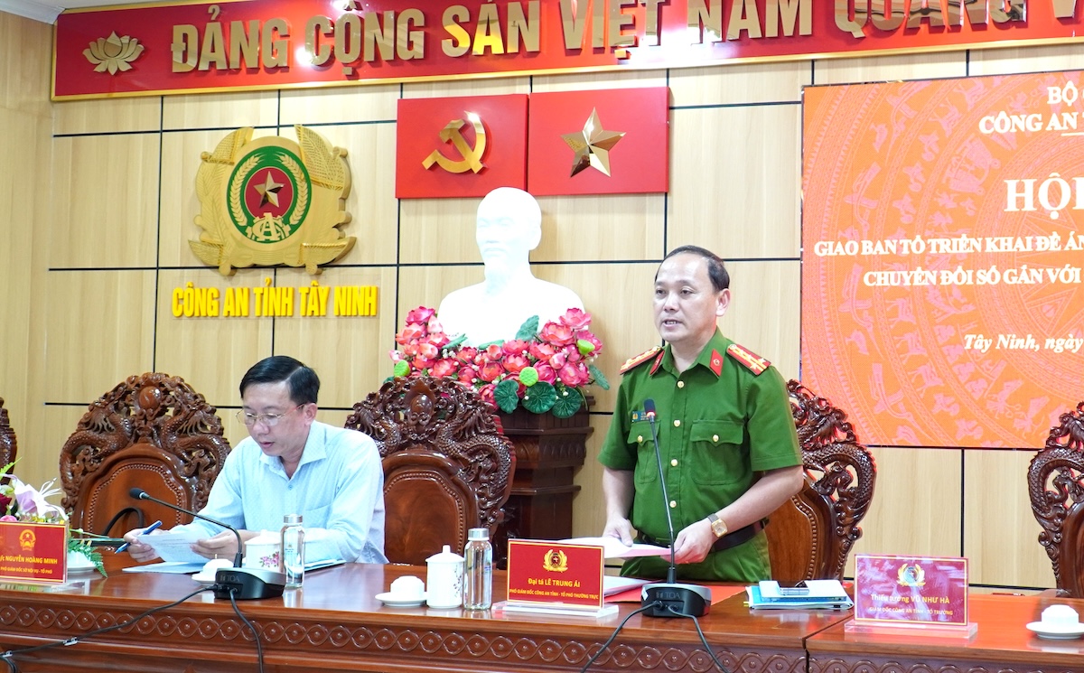 Đại tá Lê Trung Ái - Phó Giám đốc Công an tỉnh, Tổ phó thường trực Tổ công tác; đồng chí Nguyễn Hoàng Minh - Phó Giám đốc Sở nội vụ, Tổ phó Tổ công tác đồng chủ trì Hội nghị. Tham dự Hội nghị có đại diện các cơ quan thành viên Tổ công tác triển khai Đề án 06; cải cách hành chính chuyển đổi số gắn với Đề án 06 tỉnh Tây Ninh.