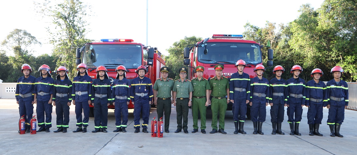 Đại tá Lê Văn Thuận - Phó Giám đốc Công an tỉnh kiểm tra công tác PCCC.