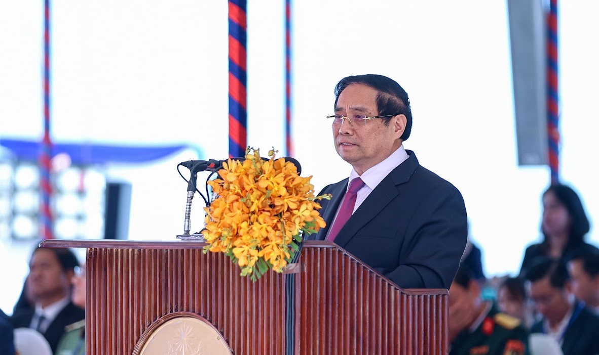 Nhân dịp này, thay mặt Chính phủ và Nhân dân Việt Nam, Thủ tướng Phạm Minh Chính trân trọng cảm ơn Thủ tướng Vương quốc Campuchia Samdech Thipadei Hun Manet, Chính phủ, các bộ, ngành, chính quyền và nhân dân Campuchia nói chung và tỉnh Prey Veng nói riêng, đã đồng lòng, ủng hộ, phối hợp chặt chẽ với Việt Nam để hoàn thành việc nâng cấp cặp cửa khẩu.