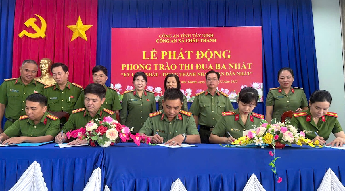 Ngày 08/12/2025, Công an xã Châu Thành tổ chức Lễ phát động phong trào thi đua “Ba nhất: Kỷ luật nhất - Trung thành nhất - Gần dân nhất”. Đến dự lễ có đồng chí Võ Thị Ánh Hậu - Phó bí thư Đảng uỷ, Chủ tịch UBND xã. Thượng tá Dương Tấn Toàn - Trưởng Công an xã chủ trì buổi Lễ.