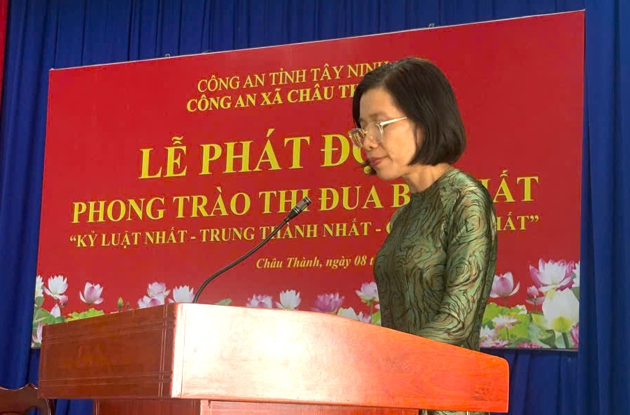 Phát biểu tại buổi lễ phát động, đồng chí Võ Thị Ánh Hậu - Phó bí thư Đảng uỷ, Chủ tịch UBND xã yêu cầu: “Công an xã Châu Thành cần nêu cao tinh thần trách nhiệm, tập trung phấn đấu hằng ngày, đưa phong trào thi đua “Ba Nhất” lan tỏa mạnh mẽ, thật sự trở thành động lực để thực hiện thắng lợi nhiệm vụ chính trị được giao. Đồng thời lực lượng Công an xã cần cụ thể hóa theo từng nhiệm vụ công tác, bám sát thực tiễn gắn với nhiệm vụ chính trị. Từ đó quyết tâm hơn trong mọi nhiệm vụ, từ đảm bảo an ninh chính trị, trật tự xã hội, phòng chống tội phạm, đến hỗ trợ nhân dân… Qua đó, góp phần xây dựng hình ảnh người chiến sĩ Công an Châu Thành vừa bản lĩnh, vừa gần gũi, luôn là chỗ dựa tin cậy cho nhân dân và đảm bảo an ninh trật tự ngay từ cơ sở”.