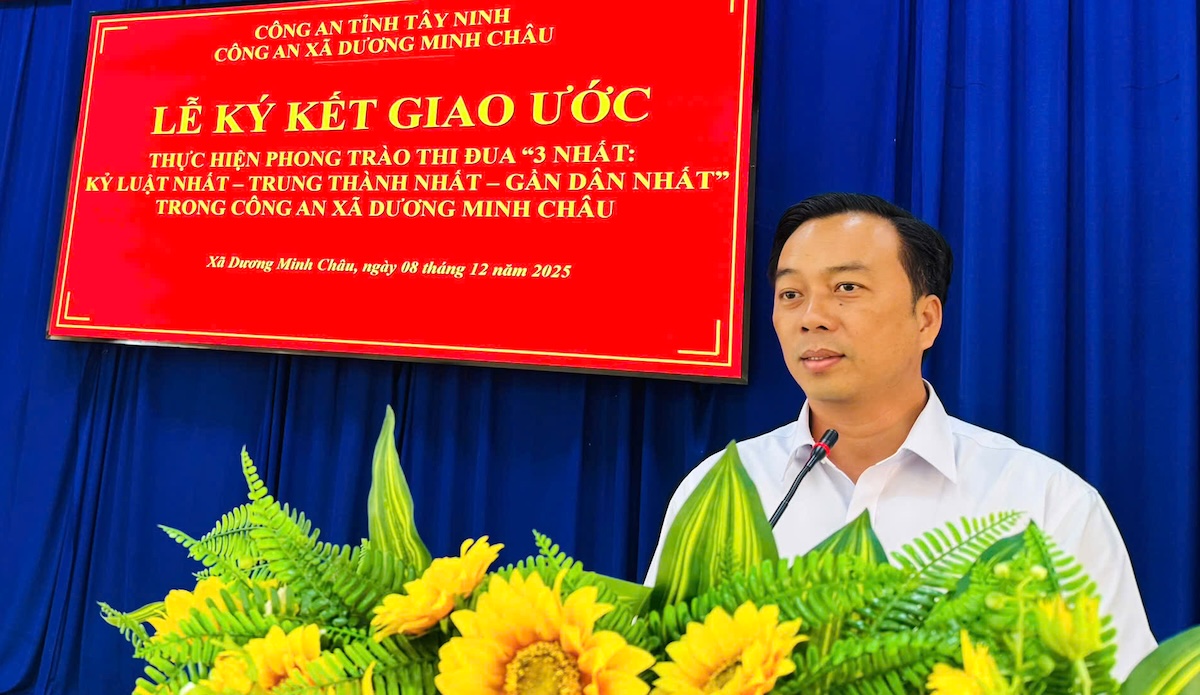 Chiều ngày 08/12/2025, Công an xã Dương Minh Châu tổ chức Lễ phát động và ký kết giao ước thi đua phong trào “Ba Nhất: Kỷ luật nhất - Trung thành nhất - Gần dân nhất”, nhằm tạo chuyển biến mạnh mẽ về nhận thức và hành động trong toàn thể cán bộ, chiến sĩ, góp phần xây dựng lực lượng Công an xã trong sạch, vững mạnh, chính quy, tinh nhuệ, hiện đại, đáp ứng yêu cầu nhiệm vụ trong tình hình mới.
