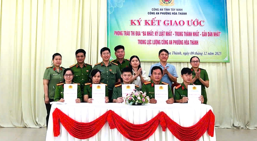 Ngày 09/12/2025, Công an phường Hòa Thành tổ chức Lễ phát động phong trào thi đua “Ba nhất: Kỷ luật nhất - Trung thành nhất - Gần dân nhất”.