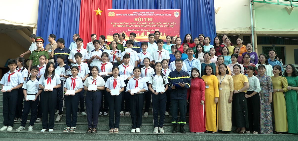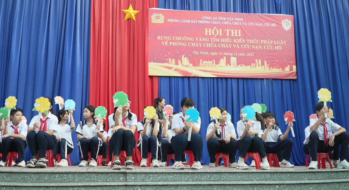 Nhằm nâng cao ý thức, trang bị kiến thức và kỹ năng cơ bản về phòng cháy, chữa cháy và cứu nạn, cứu hộ (PCCC và CNCH) cho học sinh, ngày 11/12/2025, Đội Chữa cháy và CNCH khu vực Hòa Thành - Châu Thành, phòng Cảnh sát PCCC và CNCH Công an Tây Ninh tổ chức Hội thi Rung chuông vàng tìm hiểu kiến thức pháp luật về PCCC và CNCH tại trường THCS Trần Hưng Đạo, thuộc khu phố 14, phường Tân Ninh, tỉnh Tây Ninh, với sự tham gia của 50 em học sinh được chọn ở các lớp, cùng 1.720 học sinh, giáo viên tham gia cỗ vũ.