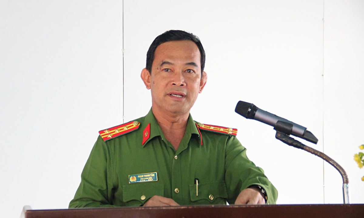 Đồng chí Phó Giám đốc Công an tỉnh Tây Ninh chúc các học viên giữ bình tĩnh, tự tin và đạt được kết quả cao nhất trong quá trình sát hạch.