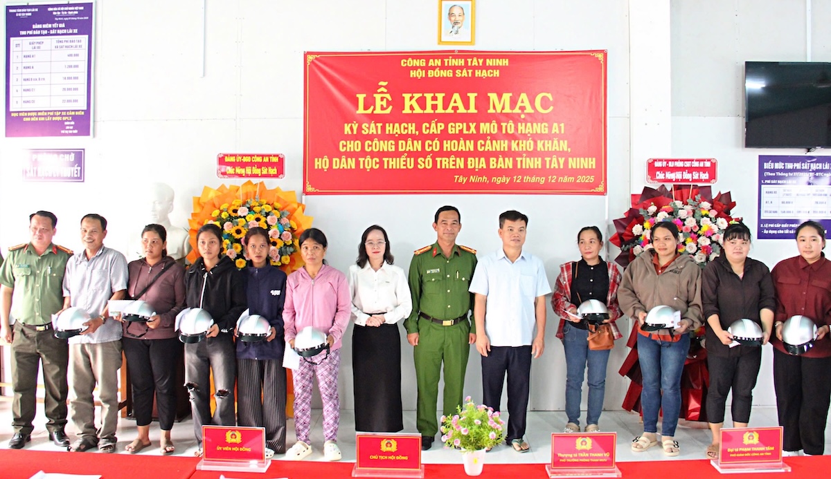 Dịp này, Phòng Cảnh sát giao thông, Công an tỉnh Tây Ninh đã vận động mạnh thường quân trao tặng quà (100.000 đồng/người) hỗ trợ chi phí ăn uống và trao tặng nón bảo hiểm cho người dân có hoàn cảnh khó khăn, đồng bào dân tộc thiểu số tham gia kỳ sát hạch.