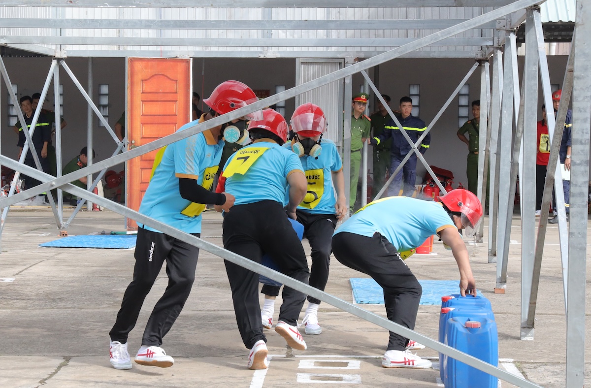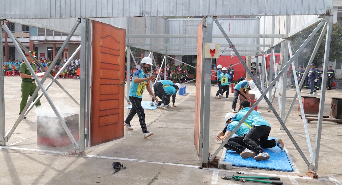 Đối với phần thi thực hành, với tình huống giả định là xảy ra cháy ở loại hình nhà ở liền kề kết hợp sản xuất, kinh doanh; các vận động viên thực hiện các thao tác chữa cháy, cứu nạn, cứu hộ như sử dụng kìm cộng lực để phá khóa cửa, sử dụng bình chữa cháy để dập tắt đám cháy, sử dụng mặt nạ lọc độc để tiếp cận đám cháy, kỹ thuật di chuyển người bị nạn, kỹ thuật tìm kiếm, di chuyển tài sản.