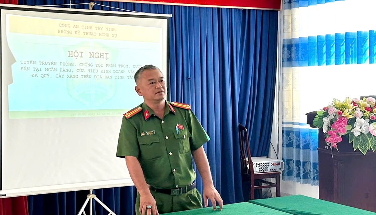 Tại buổi tuyên truyền, báo cáo viên triển khai các nội dung thông tin tuyên truyền, phân tích những thủ đoạn tinh vi mà tội phạm thường sử dụng, như giả mạo giấy tờ, lợi dụng sơ hở trong quy trình giao dịch, sử dụng công nghệ cao để xâm nhập hệ thống,.. Đồng thời, giới thiệu các giải pháp khoa học kỹ thuật hiện đại trong công tác phòng ngừa, như hệ thống camera giám sát thông minh, thiết bị cảnh báo sớm, phần mềm nhận diện đối tượng khả nghi. Bên cạnh đó, nhằm tăng tính trực quan, sinh động, Ban Tổ chức đã trình chiếu nhiều đoạn video clip với tình huống thực tế, tái hiện các vụ việc điển hình trong và ngoài tỉnh, qua đó, người tham dự có thể hình dung rõ hơn về cách thức hoạt động của tội phạm, từ đó rút ra bài học kinh nghiệm trong công tác quản lý, bảo vệ tài sản và con người.