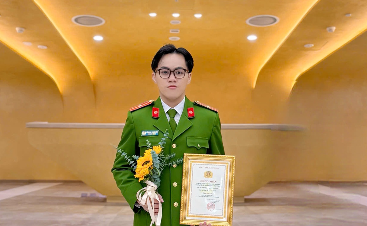 Thiếu uý Võ Thành Trung Dũng nhận giấy chứng nhận đạt giải B tại lễ Trao giải Cuộc thi chính luận về bảo vệ nền tảng tư tưởng của Đảng trong CAND năm 2025 do Đảng ủy Công an Trung ương tổ chức. |