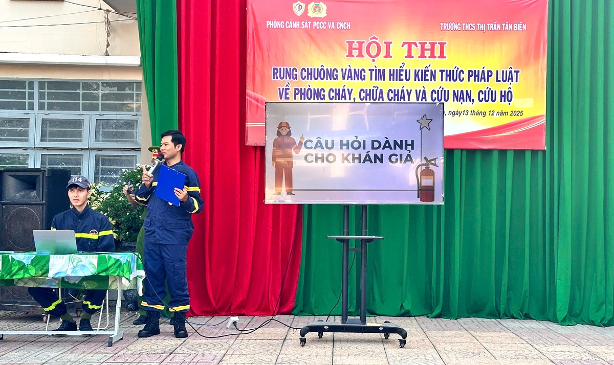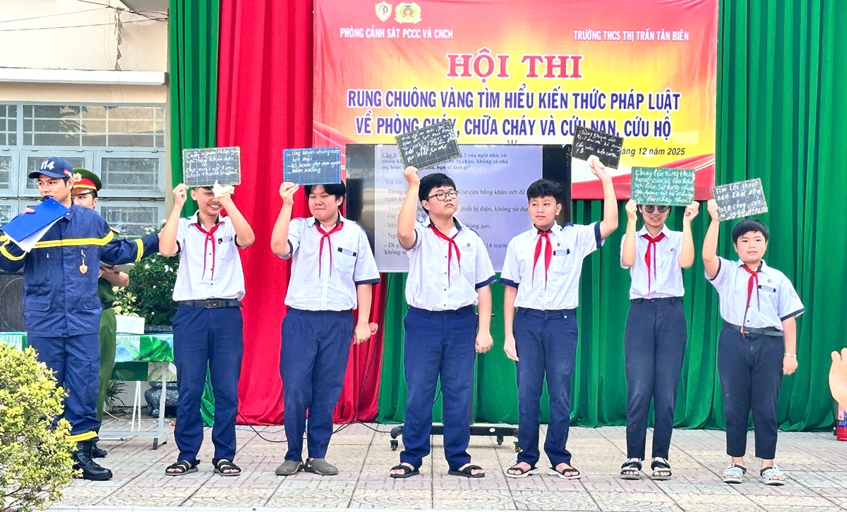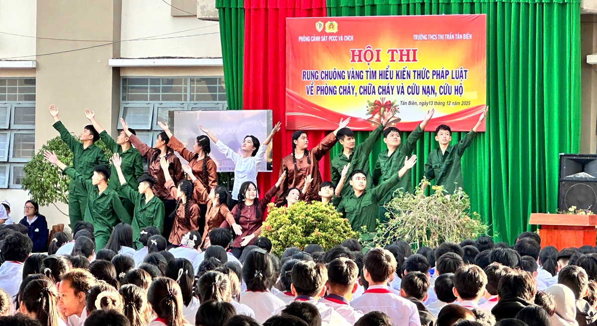 Ngày 13/12/2025, Đội chữa cháy và CNCH khu vực Tân Biên phối hợp cùng Trường THCS Thị trấn Tân Biên tổ chức Hội thi “Rung chuông vàng” tuyên truyền, phổ biến kiến thức và pháp luật về phòng cháy, chữa cháy và cứu nạn, cứu hộ với sự tham gia của 1.600 cán bộ, giáo viên và học sinh nhà trường.