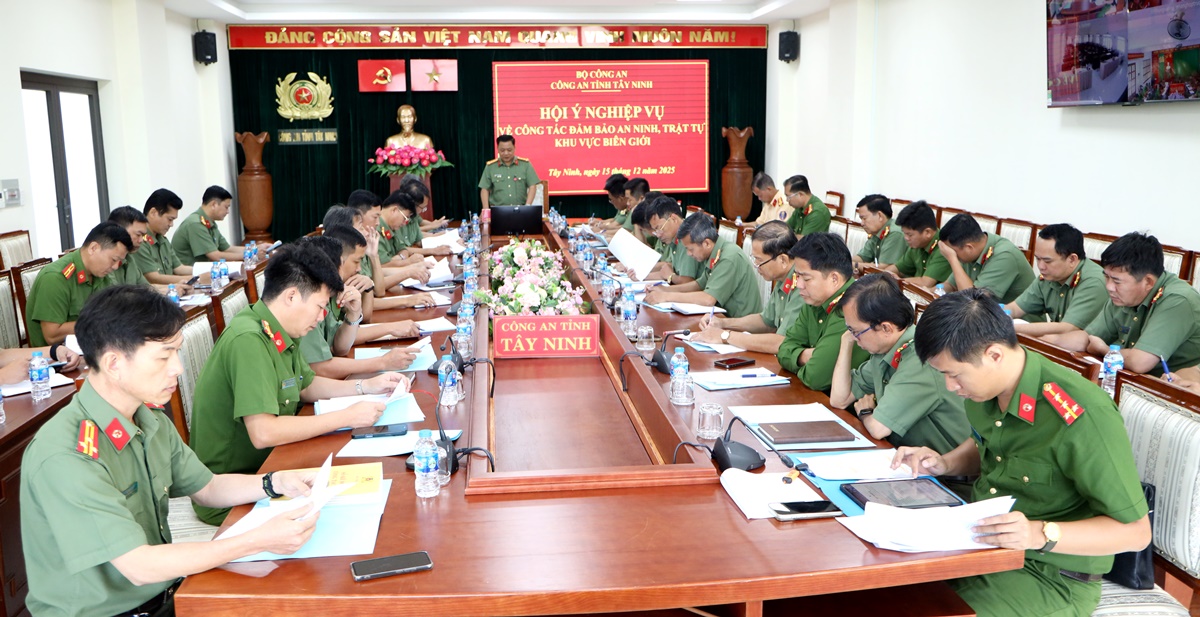 Ngày 15/12/2025, Công an tỉnh Tây Ninh tổ chức hội nghị giao ban công tác đảm bảo ANTT trên tuyến biên giới. Đại tá Lê Văn Thuận - Phó Giám đốc Công an tỉnh chủ trì hội nghị. Tham dự hội nghị có các đơn vị nghiệp vụ và 19 đơn vị là Công an các xã biên giới. Hội nghị được triển khai trực tiếp và trực tuyến đến các điểm cầu Công an xã.