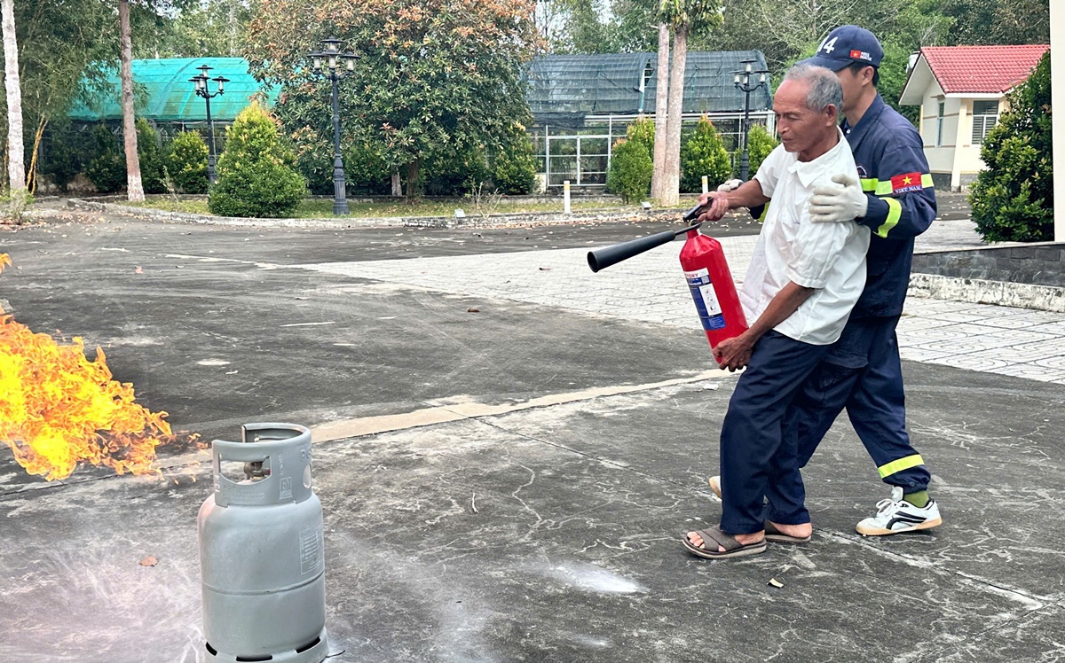 Để người dân thêm tự tin trong thực tế, buổi tuyên truyền còn tổ chức thực hành dập tắt đám cháy bình gas bằng bình chữa cháy. Nhiều người dân bỡ ngỡ ban đầu nhưng sau khi được hướng dẫn cầm nắm, mở chốt, phun đúng vị trí và hướng gió, sự sợ hãi tan dần, nhường chỗ cho sự bình tĩnh cần thiết khi đối diện với các tình huống cháy nổ.