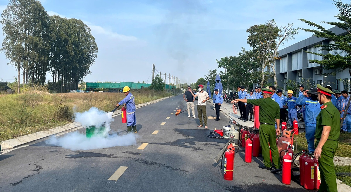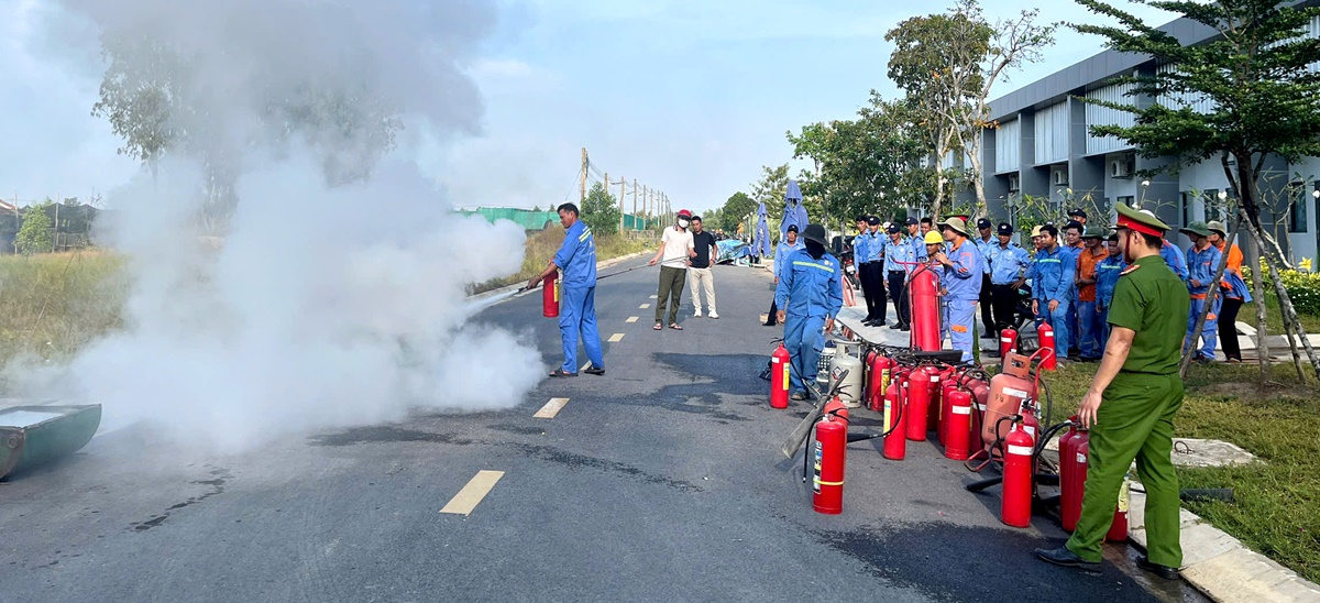 Tại buổi tuyên truyền, đại diện cán bộ, công nhân viên, người lao động của Công ty TNHH Hoàn Cầu Long An được hướng dẫn thực hành một số nội dung như: cách dùng chăn, mền dập lửa phuy xăng dầu; sử dụng các loại bình chữa cháy xách tay dập lửa; thao tác rải vòi chữa cháy và các tư thế cầm lăng; triển khai các đội hình chữa cháy cơ bản; triển khai dập tắt đám cháy mới phát sinh một cách nhanh chóng hiệu quả nhất; cách sử dụng một số phương tiện cứu nạn thông thường; các biện pháp, giải pháp cứu nạn, thoát nạn khi có sự cố cháy nổ xảy ra.