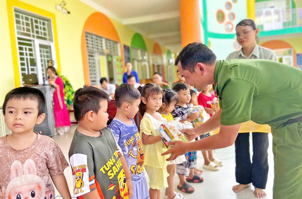 Phòng Kỹ thuật hình sự Công an tỉnh tặng quà cho các cháu thiếu nhi.