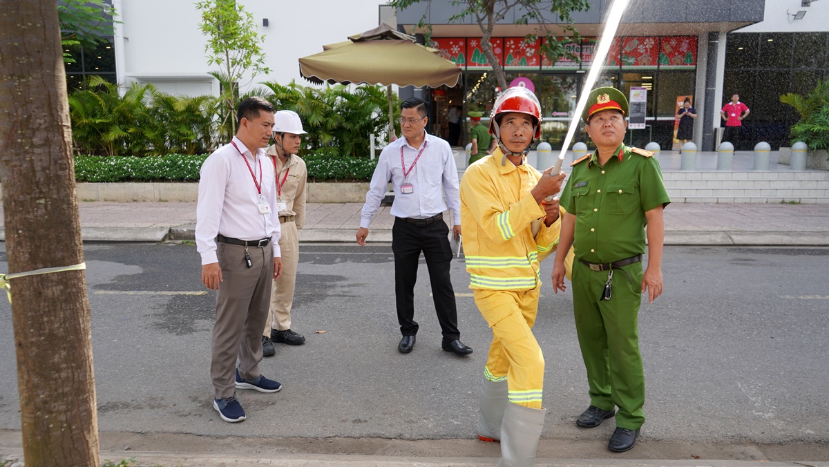 Phòng Cảnh sát phòng cháy chữa cháy và cứu nạn cứu hộ hướng dẫn, thực tập PCCC tại Trung tâm thương mại AEON Tân An.
