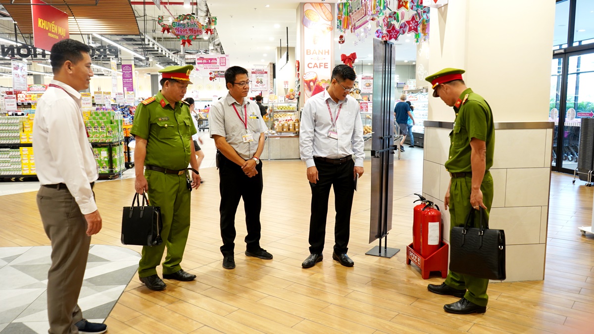 Hình 2. Phòng Cảnh sát phòng cháy chữa cháy và cứu nạn cứu hộ Công an tỉnh Tây Ninh kiểm tra an toàn PCCC tại Trung tâm thương mại AEON Tân An.