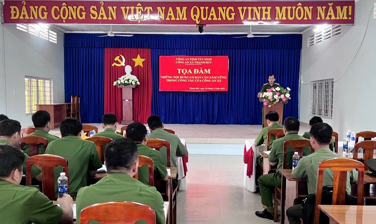 Ngày 26/12/2025, Công an xã Thạnh Đức tổ chức buổi tọa đàm nhằm chủ động định hướng, xác định chức năng, nhiệm vụ, vai trò, trách nhiệm trong toàn lực lượng Công an xã. Trung tá Nguyễn Đoàn Dũng - Trưởng Công an xã chủ trì.