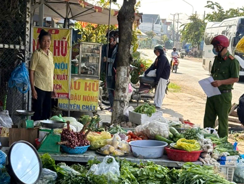 Công an xã Tân Hưng đảm bảo trật tự ATGT lòng đường, vỉa hè