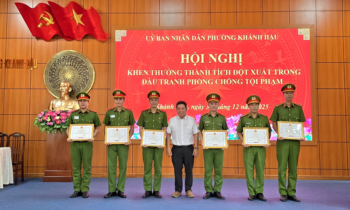 Để kịp thời ghi nhận và động viên tinh thần chiến đấu của cán bộ chiến sỹ, UBND phường Khánh Hậu quyết định khen thưởng đột xuất 06 cá nhân là cán bộ chiến sỹ Công an phường đã lập thành tích xuất sắc trong công tác đấu tranh, phòng chống tội phạm.