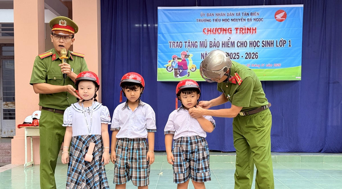 Theo đó, tổng số mũ bảo hiểm được cấp phát là 562 chiếc, bảo đảm 100% học sinh lớp Một đều được nhận mũ khi tham gia giao thông bằng mô tô, xe gắn máy, xe máy điện, xe đạp điện. Tất cả mũ bảo hiểm được Công ty Honda Việt Nam tài trợ trao tặng đạt Quy chuẩn kỹ thuật Quốc gia cho toàn bộ học sinh lớp Một. Cụ thể, Trường Tiểu học Nguyễn Bá Ngọc được trao 220 mũ; Trường Tiểu học thị trấn Tân Biên 165 mũ; Trường Tiểu học Thạnh Sơn 43 mũ; Trường Tiểu học Tân Bình 68 mũ và Trường Tiểu học Thạnh Tây 66 mũ.