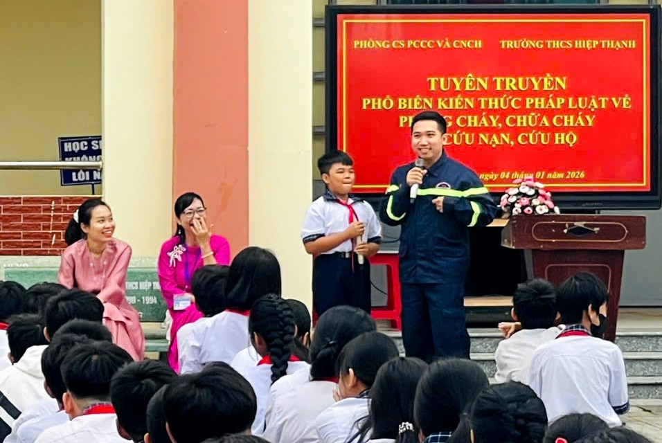 Sáng ngày 05/01/2026, Đội chữa cháy và cứu nạn cứu hộ khu vực Gò Dầu phối hợp Công an xã Phước Thạnh tổ chức buổi tuyên truyền, phổ biến kiến thức pháp luật về PCCC và CNCH cho 666 người là các giáo viên và học sinh trường THCS Hiệp Thạnh.