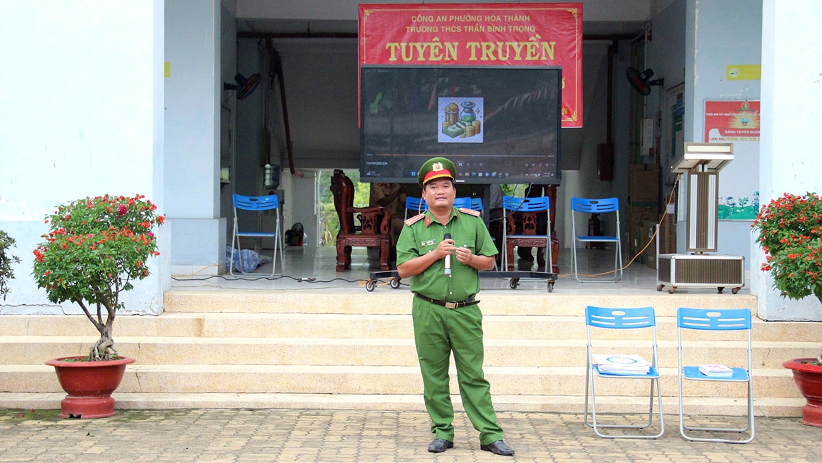 Trong buổi tuyên truyền, học sinh còn được cán bộ Công an phường Hoà Thành cũng phổ biến những kiến thức cơ bản về nguyên nhân, tác hại của các hoạt động sản xuất, mua bán, tàng trữ, vận chuyển, sử dụng các loại pháo nổ trái phép. Qua đó, giúp các em hiểu rõ hơn về sự nguy hiểm của việc sử dụng pháo nổ; mức xử phạt nếu vi phạm các quy định của pháp luật về mua bán, tàng trữ, vận chuyển và sử dụng trái phép pháo nổ cũng như các loại vũ khí, vật liệu nổ; đồng thời, trang bị và nâng cao kiến thức về phòng chống mua bán, sử dụng pháo nổ Tết Nguyên đán Bính Ngọ 2026.