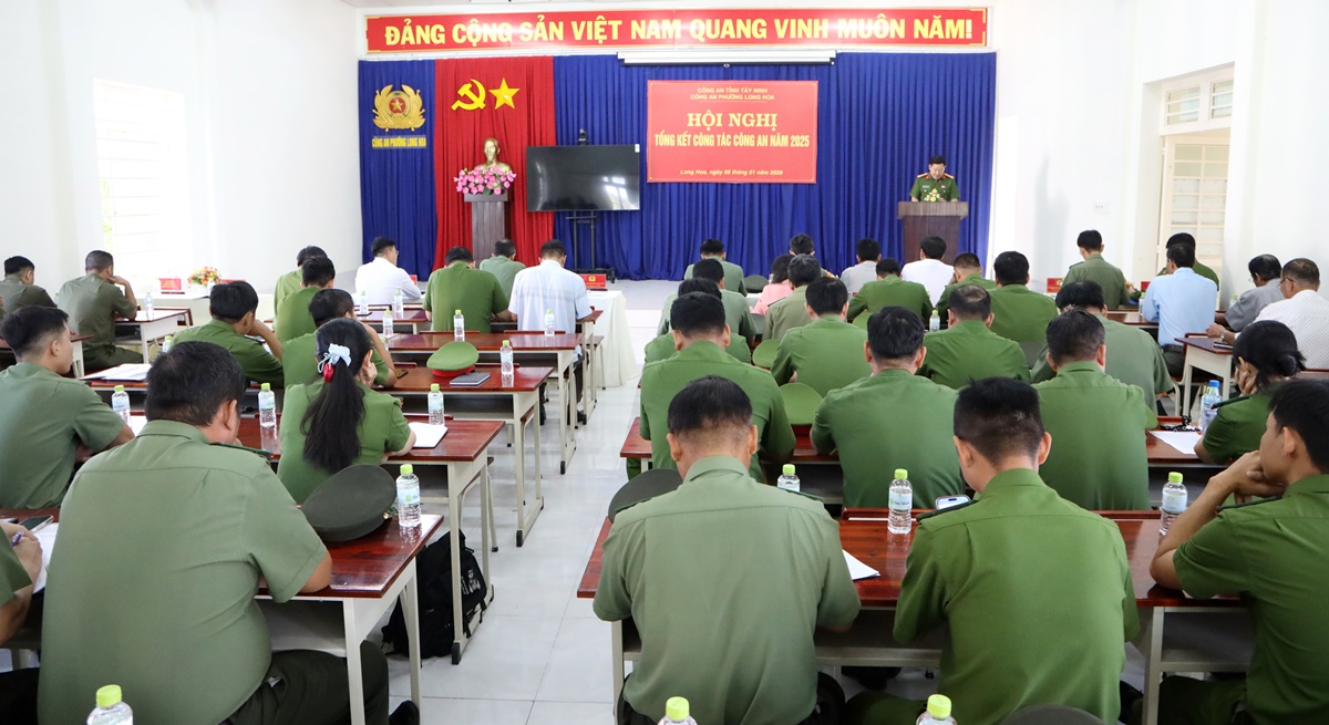 Sáng nay (08/01/2026), Công an phường Long Hoa tổ chức Hội nghị tổng kết công tác năm 2025; triển khai nhiệm vụ năm 2026. Đến dự và chỉ đạo hội nghị có Đại tá Lê Văn Thuận - Phó Giám đốc Công an tỉnh; ông Trần Trung Hiếu - Phó chủ tịch UBND phường. Thượng tá Nguyễn Trung Thái - Trưởng Công an phường chủ trì hội nghị.