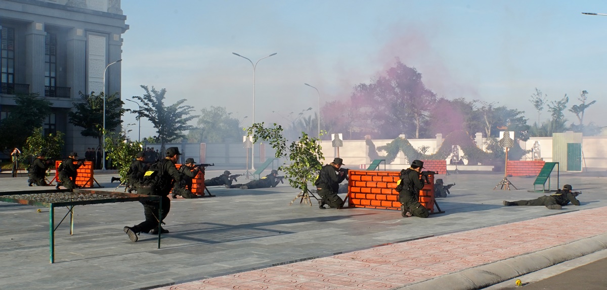 Thiếu tá Trần Vi Quốc - Đội trưởng Đội Cảnh sát cơ động, Phòng Cảnh sát cơ động Công an tỉnh thay mặt cán bộ, chiến sĩ Tổ Cảnh sát cơ động mạnh hứa quyết tâm nghiêm chỉnh chấp hành chủ trương, đường lối, chính sách của Đảng, pháp luật của Nhà nước, nghị quyết, chỉ thị và Điều lệnh CAND; sẵn sàng đi bất cứ đâu, làm bất cứ việc gì khi Tổ quốc, Đảng và nhân dân cần đến; tích cực học tập nâng cao trình độ, bản lĩnh chính trị; tinh thông nghiệp vụ, giỏi về quân sự, võ thuật; làm chủ, ứng dụng hiệu quả tính năng, cấu tạo các loại vũ khí, công cụ hỗ trợ, thiết bị kỹ thuật, phương tiện được trang bị vào thực tiễn công tác, chiến đấu; nghiên cứu, giả định các tình huống sát với tình hình thực tế, từ đó tham mưu lãnh đạo các cấp xây dựng kế hoạch, phương án, biện pháp xử lý; tổ chức huấn luyện, tập luyện cho cán bộ, chiến sĩ thuần thục các nội dung, không để bị động, bất ngờ khi có tình huống xảy ra; ứng trực 24/24, sẵn sàng ra quân thực hiện nhiệm vụ khi được điều động.