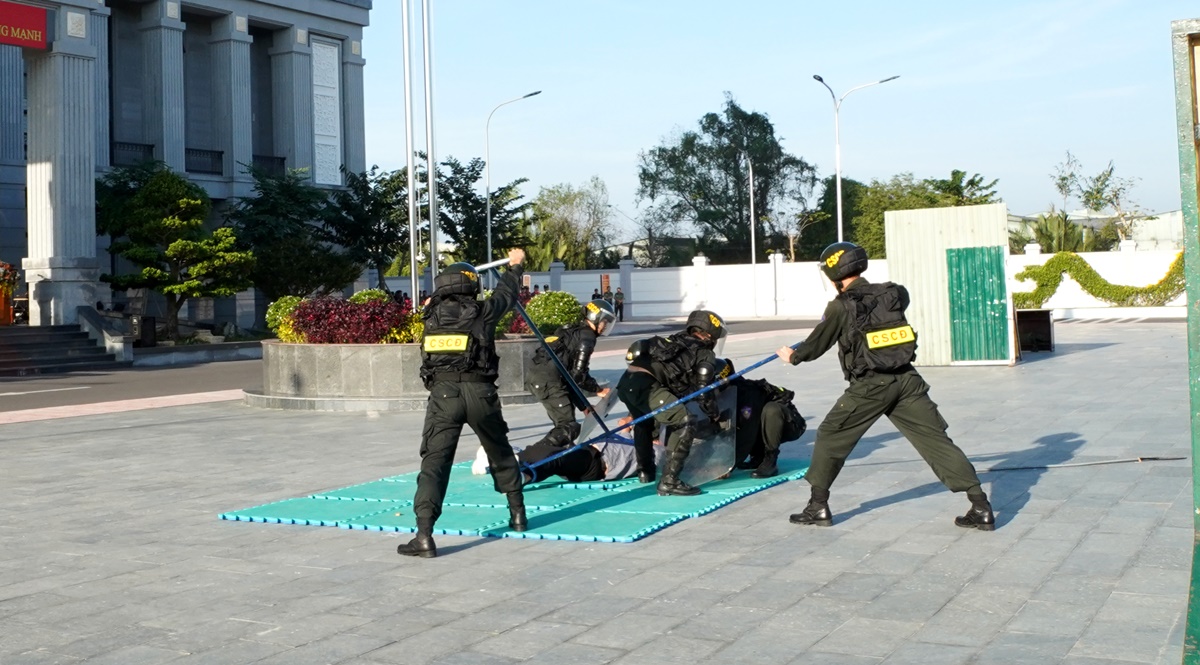 * Một số hình ảnh Tổ Cảnh sát cơ động mạnh thực hiện kỹ năng được huấn luyện tại buổi lễ