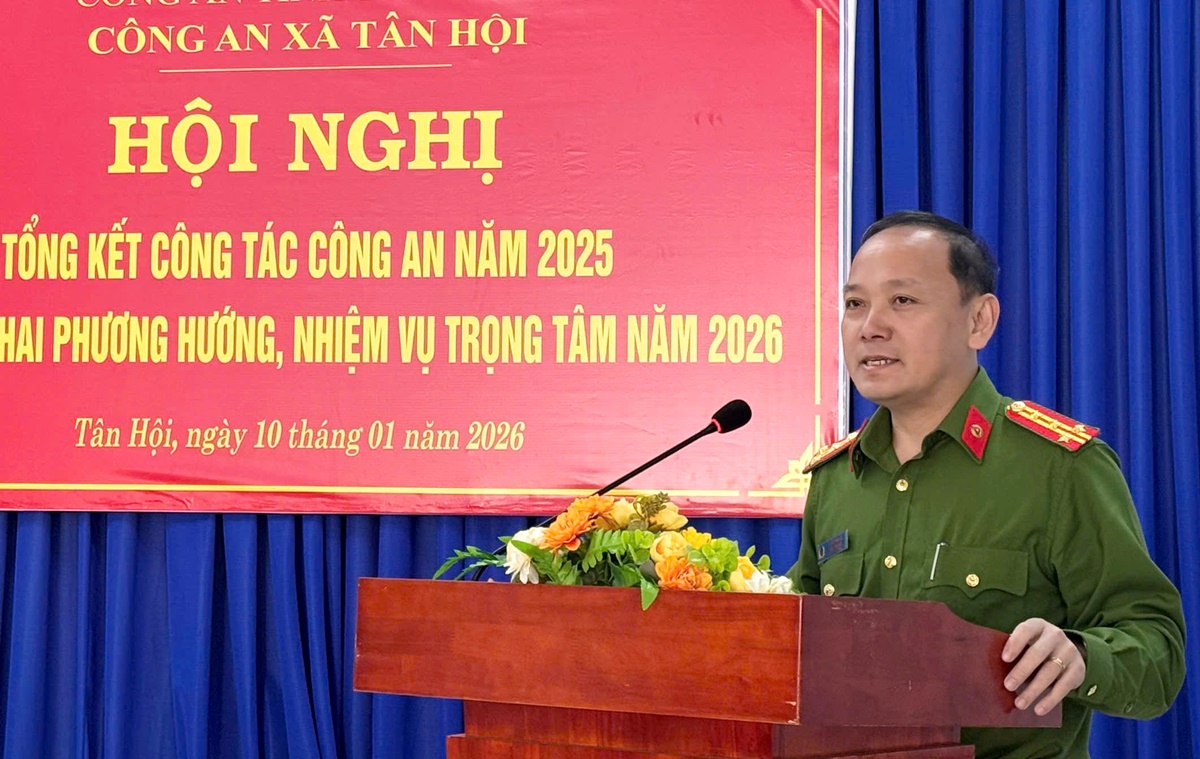 Sáng ngày 10/01/2026, Công an xã Tân Hội tổ chức Hội nghị tổng kết công tác Công an năm 2025 và triển khai phương hướng, nhiệm vụ trọng tâm năm 2026.