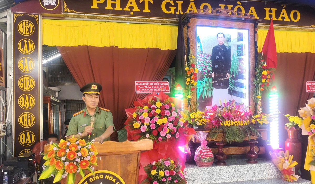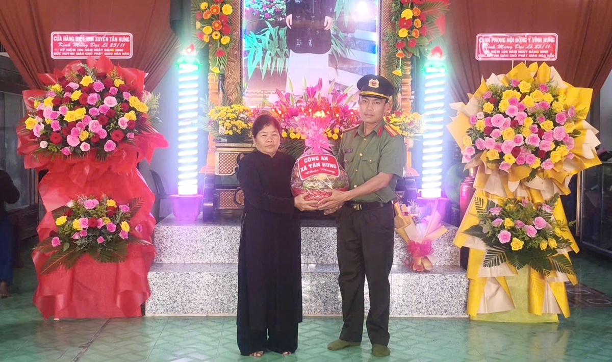 Nhân dịp kỷ niệm 106 năm Ngày sinh của Đức Huỳnh giáo chủ người sáng lập ra đạo Phật Giáo Hoà Hảo (ngày 25/11 âm lịch) năm 2026, Công an xã Tân Hưng, tỉnh Tây Ninh vừa tổ chức đoàn đến thăm, tặng quà và chúc mừng Ban Trị sự Phật Giáo Hoà Hảo (PGHH) xã Tân Hưng và tuyên truyền pháp luật cho bà con tín đồ PGHH trên địa bàn.