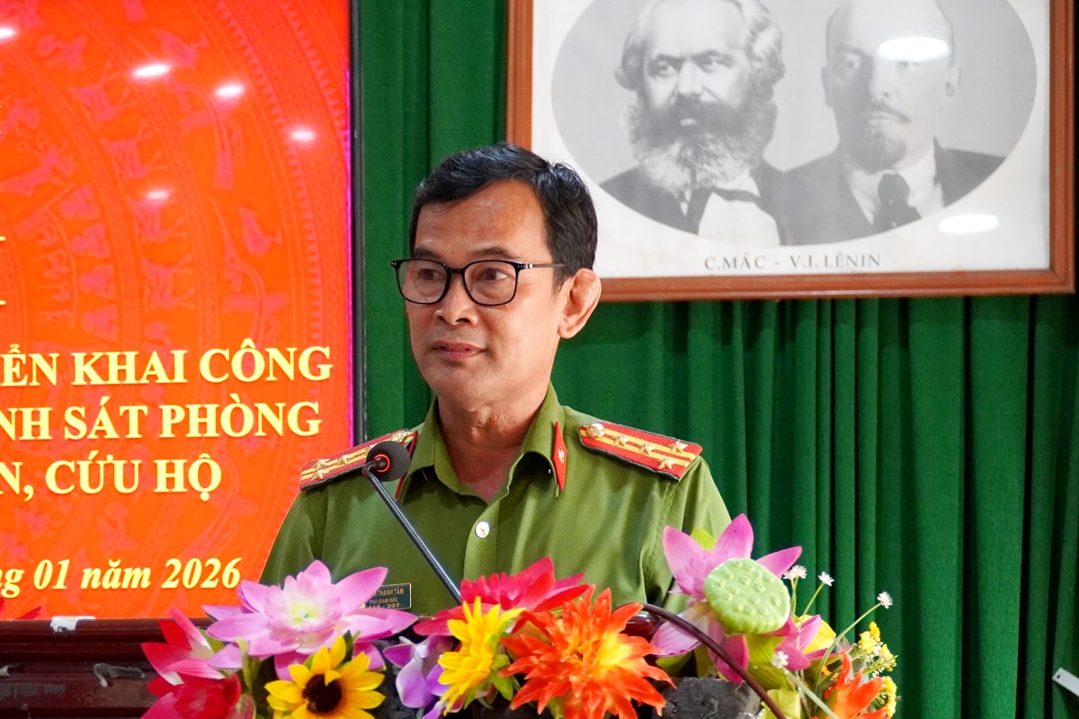 Về nhiệm vụ năm 2026, Đại tá Phạm Thanh Tâm yêu cầu toàn lực lượng quán triệt, thực hiện nghiêm túc các nghị quyết, kết luận, kế hoạch của Bộ Công an, Cục Cảnh sát PCCC và CNCH, Đảng ủy và Ban Giám đốc Công an tỉnh; triển khai đồng bộ các biện pháp bảo đảm an toàn PCCC và CNCH phục vụ Đại hội XIV của Đảng, bầu cử đại biểu Quốc hội khóa XVI và bầu cử đại biểu Hội đồng nhân dân các cấp nhiệm kỳ 2026 - 2031, Tết Nguyên đán Bính Ngọ 2026 và các lễ hội đầu xuân; đồng thời tiếp tục xây dựng lực lượng Cảnh sát PCCC và CNCH chính quy, tinh nhuệ, hiện đại, đáp ứng yêu cầu nhiệm vụ trong tình hình mới./.