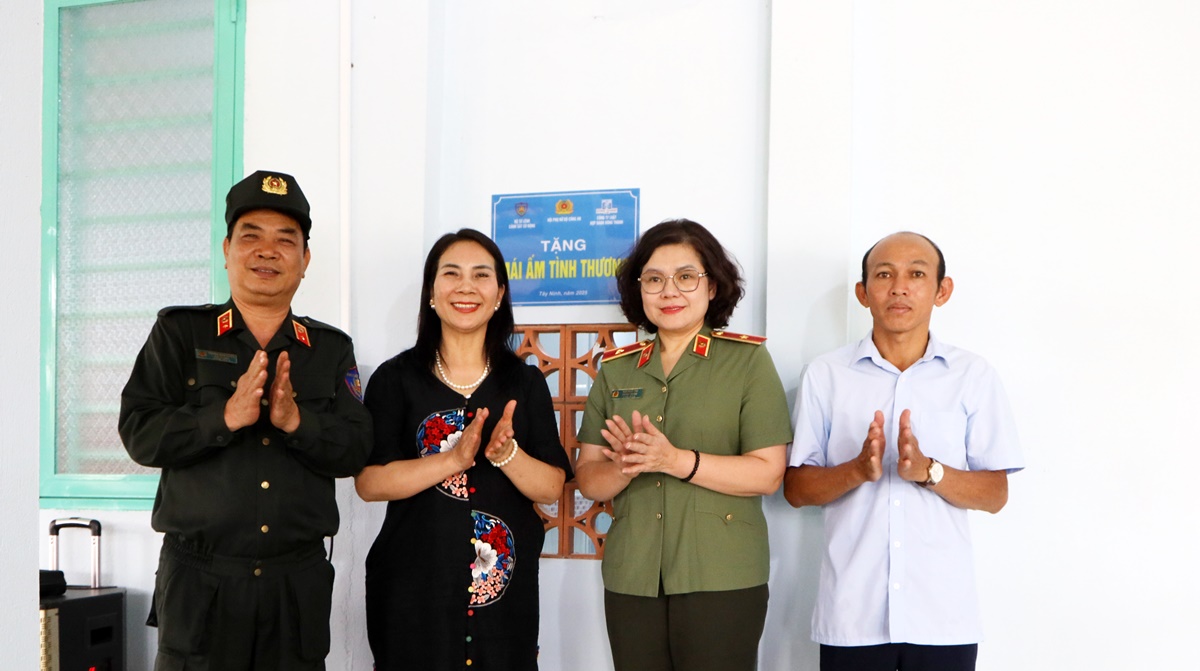 Dự lễ Khánh thành "Mái ấm tình thương" tại tỉnh Tây Ninh, có Thiếu tướng Ngô Hoài Thu - Phó Cục trưởng Cục Công tác Chính trị Bộ Công an, Trưởng Ban Phụ nữ CAND; Thiếu tướng Phùng Văn Chiến - Phó Tư lệnh Cảnh sát cơ động cùng đại diện lãnh đạo Công ty TNHH MTV Kỹ thuật máy bay, Công ty TNHH MTV Suất ăn Hàng không Việt Nam, Công ty TNHH MTV Dịch vụ mặt đất Sân bay Việt Nam thuộc Tổng Công ty Hàng không Việt Nam. Tham dự chương trình, còn có các đồng chí trong Ban phụ nữ CAND; Ban Phụ nữ Bộ Tư lệnh CSCĐ; Phòng công tác chính trị Công an tỉnh Tây Ninh...
