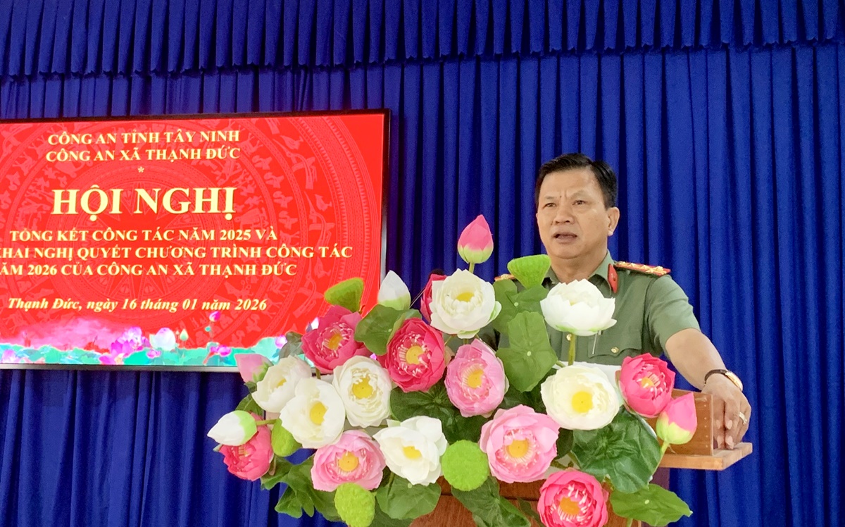 Phát biểu chỉ đạo tại hội nghị, Đại tá Phan Văn Triều - Tỉnh ủy viên, Phó Bí thư Đảng ủy, Phó Giám đốc Công an tỉnh ghi nhận và biểu dương những kết quả mà Công an xã Thạnh Đức đã đạt được trong năm 2025. Đồng chí nhấn mạnh, trong năm 2026, Công an xã cần tiếp tục phát động phong trào thi đua "Ba nhất" trong toàn lực lượng; phát huy vai trò nòng cốt, chủ động nắm chắc tình hình đảm bảo An ninh chính trị và trật tự an toàn xã hội Đại hội Đảng toàn quốc lần thứ XIV; Tết Nguyên đán Bính Ngọ 2026; cuộc bầu cử Đại biểu Quốc hội khóa XVI và bầu cử Đại biểu Hội đồng nhân dân các cấp nhiệm kỳ 2026 - 2031, không để bị động bất ngờ trước mọi tình huống. Đặc biệt, cần chú trọng công tác dân vận, phối hợp chặt chẽ với lực lượng an ninh cơ sở để xây dựng thế trận an ninh nhân dân vững chắc.