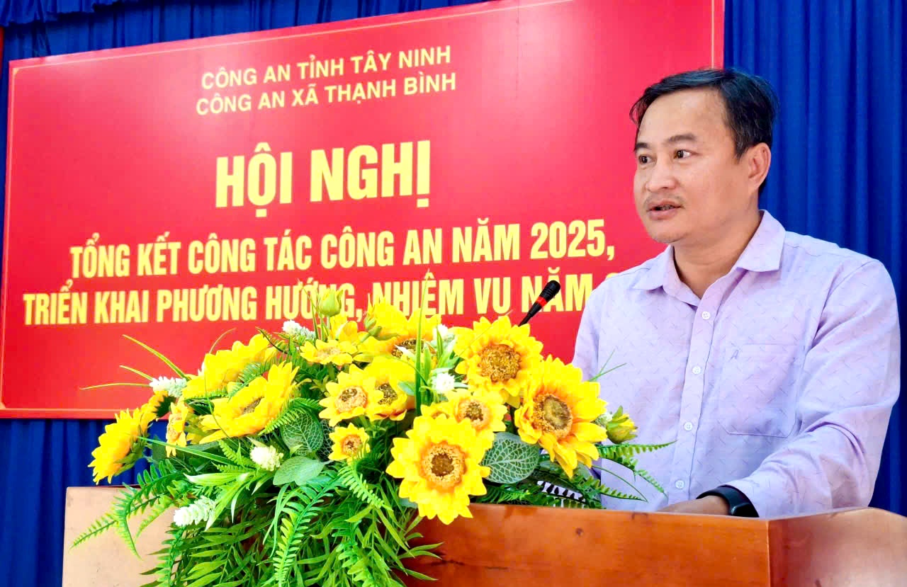 Phát biểu chỉ đạo tại hội nghị, Đồng chí Chủ tịch UBND xã ghi nhận và biểu dương những kết quả đạt được của Công an xã Thạnh Bình trong năm 2025; đồng thời đề nghị trong năm 2026, lực lượng Công an xã và các Tổ bảo vệ an ninh, trật tự ở cơ sở tiếp tục phát huy những kết quả đạt được, khắc phục khó khăn, nâng cao hiệu quả công tác, góp phần giữ vững an ninh, trật tự, phục vụ phát triển kinh tế - xã hội tại địa phương.