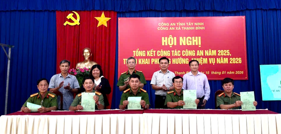 Nhân dịp hội nghị, Công an xã Thạnh Bình tổ chức Lễ ký kết giao ước thi đua “Vì an ninh Tổ quốc” năm 2026 giữa các tổ công tác thuộc Công an xã và các Tổ bảo vệ an ninh, trật tự ở cơ sở. Việc ký kết thể hiện quyết tâm của các lực lượng trong việc phát huy tinh thần trách nhiệm, đoàn kết, phối hợp chặt chẽ, phấn đấu hoàn thành tốt nhiệm vụ được giao./.
