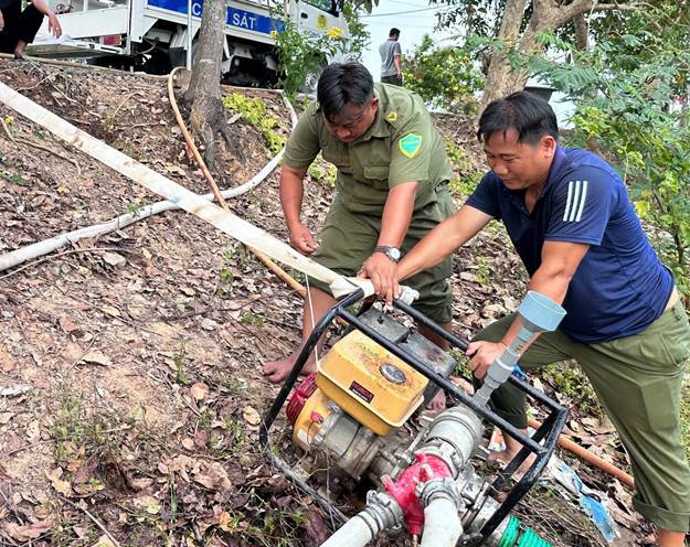 Công an xã Vĩnh Thạnh kiểm tra, bảo dưỡng, vận hành thử phương tiện PCCC