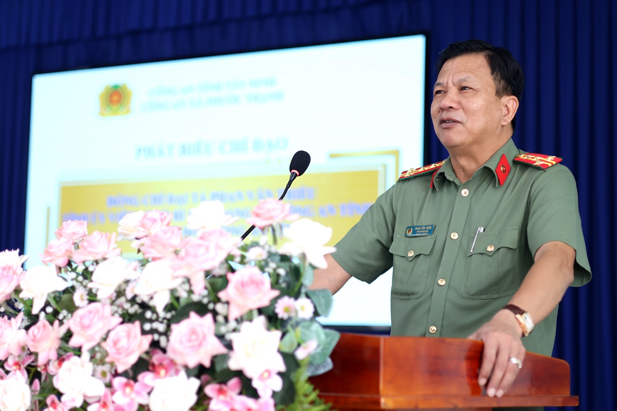 Đại tá Phan Văn Triều - Phó Giám đốc Công an tỉnh phát biểu chỉ đạo tại hội nghị.