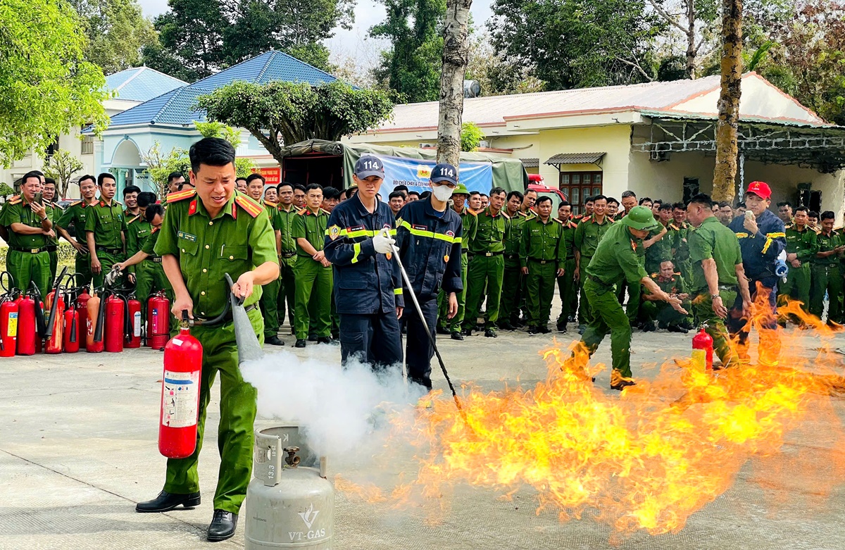 Trong phần thực hành, cán bộ, chiến sĩ Trại giam Cây Cầy được trực tiếp thao tác sử dụng lăng, vòi chữa cháy; thực hành dập tắt phuy đang cháy bằng bao bố; tham gia diễn tập phương án chữa cháy với tình huống giả định sát thực tế; thực hành sử dụng bình chữa cháy xách tay để dập tắt đám cháy bình gas. Thông qua các nội dung thực hành, lực lượng PCCC cơ sở đã nâng cao kỹ năng, thao tác thuần thục, sẵn sàng xử lý hiệu quả các tình huống cháy, nổ có thể xảy ra.