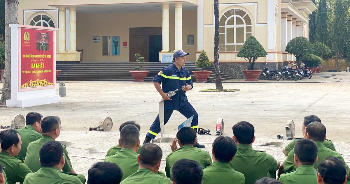 Tại buổi huấn luyện, cán bộ Đội Chữa cháy và CNCH khu vực Tân Biên đã phổ biến các quy định của pháp luật về công tác PCCC và CNCH; đồng thời phân tích những nguy cơ tiềm ẩn có thể dẫn đến cháy, nổ trong môi trường trại giam như việc sử dụng hệ thống điện với cường độ cao, thiết bị điện sinh nhiệt hoạt động liên tục, nguy cơ chập điện do quá tải, sơ suất trong sinh hoạt, lao động, cũng như các yếu tố chủ quan từ con người khi thiếu ý thức chấp hành quy định an toàn PCCC. Qua đó, nhấn mạnh trách nhiệm của mỗi cán bộ, chiến sĩ trong công tác tự kiểm tra, tự phòng ngừa, kịp thời phát hiện và xử lý các nguy cơ mất an toàn, không để phát sinh sự cố cháy, nổ. Nhằm nâng cao hiệu quả tuyên truyền và tạo tính trực quan, ban tổ chức đã cho cán bộ, chiến sĩ xem các đoạn video, hình ảnh về những vụ cháy, nổ nghiêm trọng xảy ra trong thực tế, gây thiệt hại lớn về người và tài sản. Những hình ảnh mang tính cảnh báo cao đã góp phần giúp người xem nhận thức rõ hơn hậu quả nặng nề của cháy, nổ, từ đó nâng cao tinh thần trách nhiệm, ý thức tuân thủ nghiêm các quy định về PCCC và CNCH trong quá trình thực hiện nhiệm vụ. Song song với công tác tuyên truyền, lực lượng chức năng đã hướng dẫn cán bộ, chiến sĩ các kỹ năng thoát nạn khi xảy ra cháy; kỹ năng cứu nạn, cứu hộ ban đầu; phương pháp sử dụng các phương tiện chữa cháy tại chỗ. Nội dung trọng tâm là hướng dẫn phân loại các loại bình chữa cháy thông dụng như bình bột, bình khí CO₂; đặc điểm, công dụng của từng loại và cách lựa chọn sử dụng phù hợp với từng tình huống cháy cụ thể nhằm bảo đảm an toàn và hiệu quả.