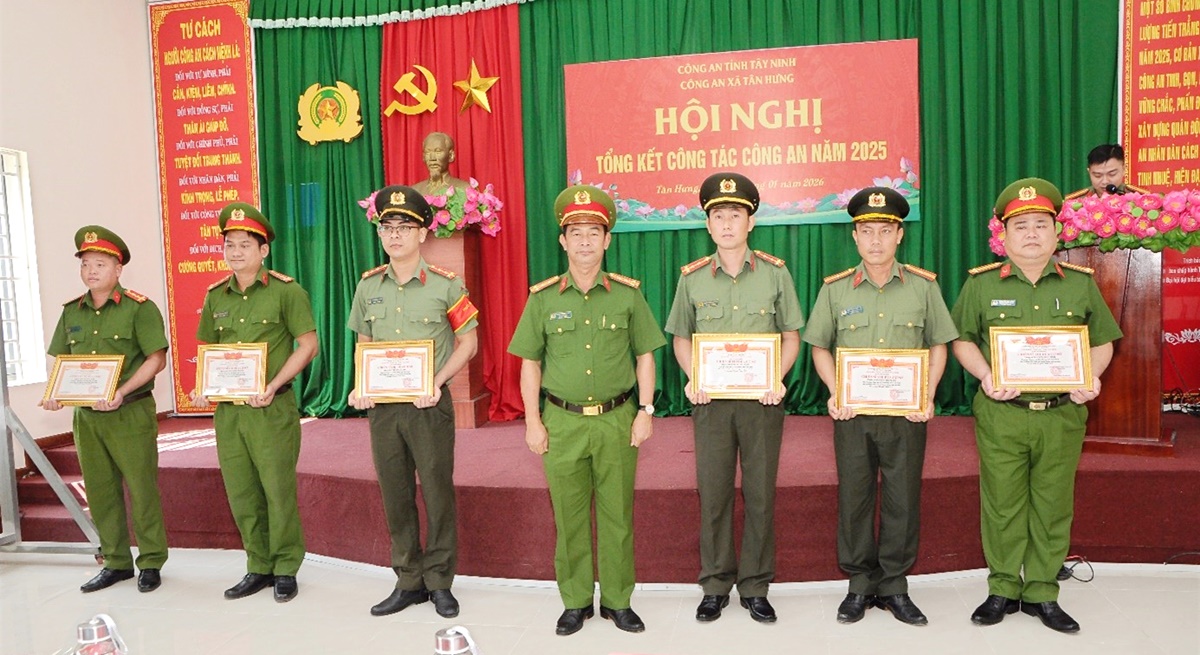 Công an xã Tân Hưng vừa tổ chức Hội nghị tổng kết công tác Công an năm 2025, triển khai chương trình công tác năm 2026. Đến dự và chỉ đạo hội nghị có Đại tá Phạm Thanh Tâm - Phó Giám đốc Công an tỉnh; đồng chí Trương Hải Đăng - Ủy viên Ban Chấp hành Đảng bộ tỉnh, Bí thư Đảng ủy xã; Phan Hoà Nông - Phó Bí thư Đảng ủy, Chủ tịch UBND xã. Trung tá Nguyễn Đức Tính - Trưởng Công an xã chủ trì hội nghị.