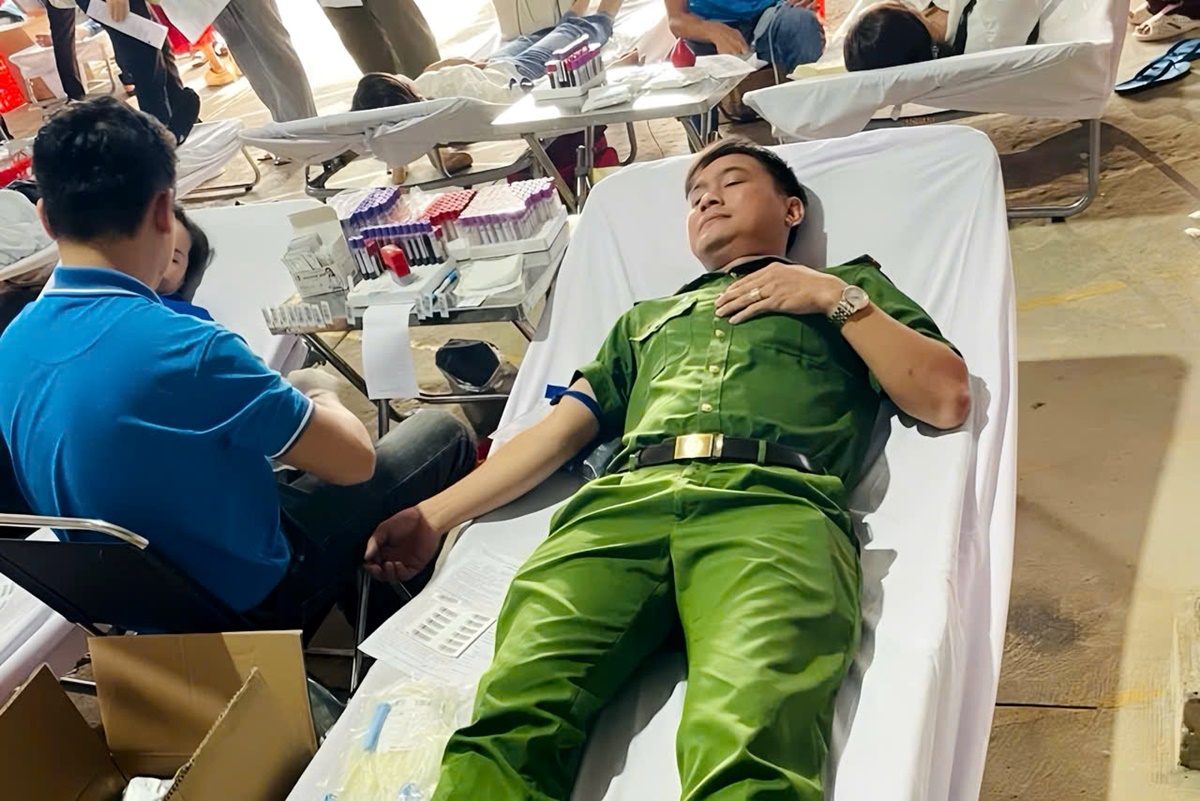 Công an xã Vĩnh Công hiếu máu tình nguyện.