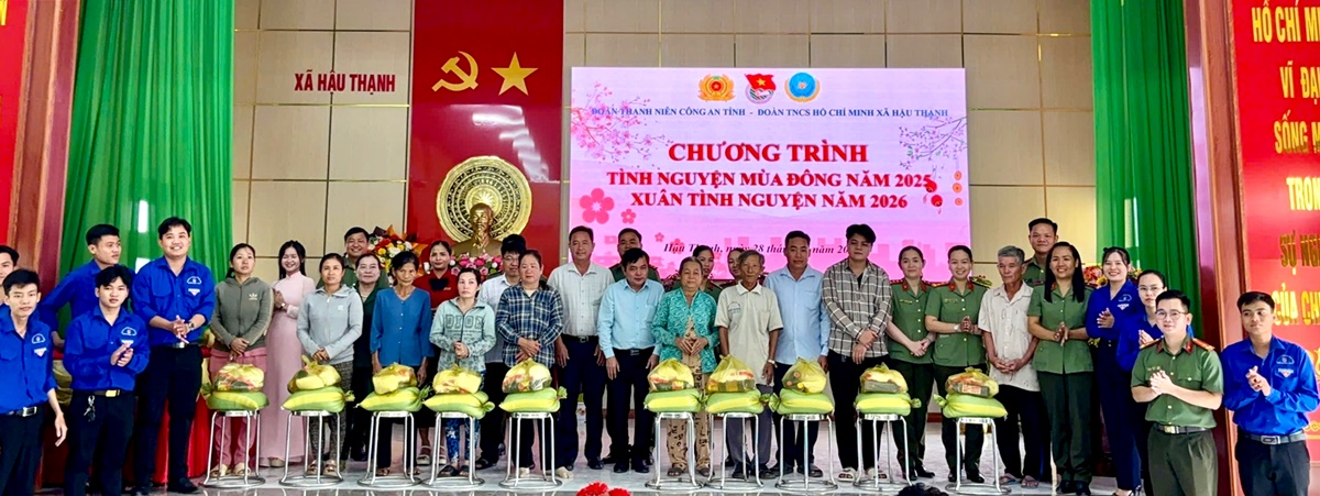 Hưởng ứng phong trào thi đua “Ba nhất: Kỷ luật nhất - Trung thành nhất - Gần dân nhất” và phát huy tinh thần xung kích, tình nguyện của tuổi trẻ, các đơn vị cũng đã tổ chức “Chương trình tình nguyện mùa Đông năm 2025, Xuân tình nguyện năm 2026”; trao tặng 50 phần qua cho người dân có hoàn cảnh khó khăn trêm địa bàn xã Hậu Thạnh.