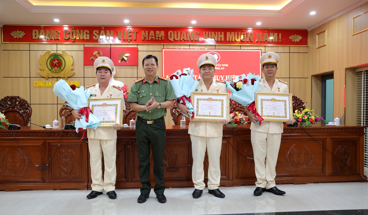 Tại buổi lễ, Đảng ủy Công an tỉnh đã công bố quyết định của Tỉnh ủy Tây Ninh và trao tặng Huy hiệu 30 năm tuổi Đảng cho 3 đồng chí: Hoàng Thúc Bảo; Trịnh Văn Tạo và Nguyễn Minh Sáng đang sinh hoạt tại các chi, đảng bộ Công an tỉnh. Quá trình công tác, 3 đồng chí luôn nêu cao tinh thần tiên phong, gương mẫu; bất kỳ vị trí công tác nào cũng luôn quyết tâm hoàn thành xuất sắc nhiệm vụ được giao. Đây là phần thưởng cao quý của Đảng nhằm ghi nhận quá trình phấn đấu, rèn luyện và giữ vững bản lĩnh chính trị của các đồng chí trong thực hiện nhiệm vụ.