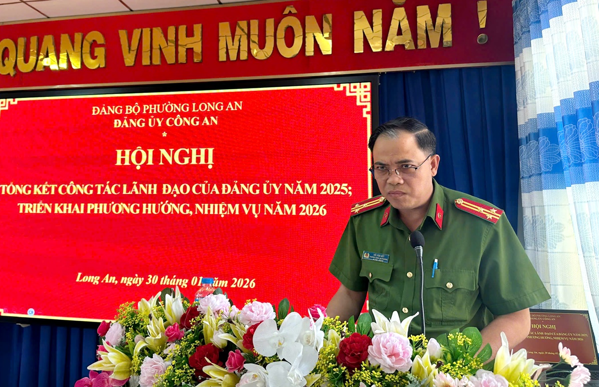Chiều ngày 30/01/2026, tại hội trường Công an phường Long An, Đảng ủy Công an phường tổ chức hội nghị tổng kết công tác lãnh đạo năm 2025 và triển khai phương hướng, nhiệm vụ năm 2026.