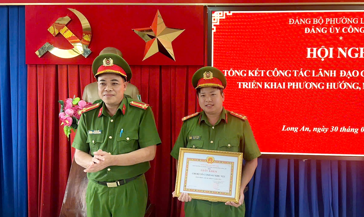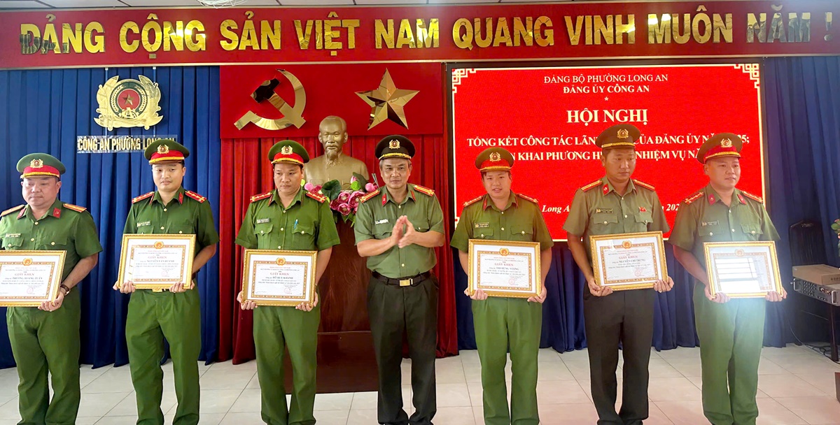 Dịp này, Đảng ủy Công an phường trao giấy khen cho một tổ chức đảng và 12 đảng viên tiêu biểu, đạt danh hiệu “Hoàn thành xuất sắc nhiệm vụ” năm 2025.
