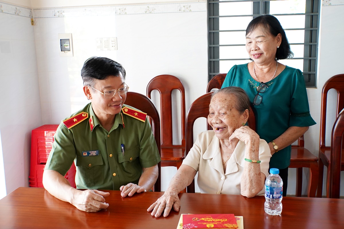 Thiếu tướng Vũ Như Hà - Ủy viên BTV tỉnh ủy, Bí thư Đảng ủy, Giám đốc Công an tỉnh thăm hỏi, tặng quà cho mẹ VNAH Lê Thị Hai.